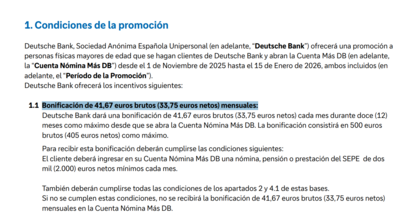 Re: Nueva promo Deutsche Bank 30€/mes durante 1 año (360€ brutos)