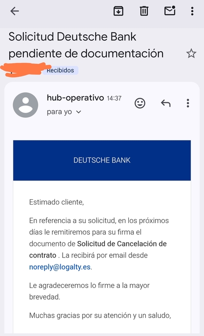 Bien, he recibido SMS de que entre en APP para continuara con el proceso de alta, al entrar me dice que lea el contrato y puse en Aceptar y despues en Firma.