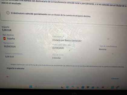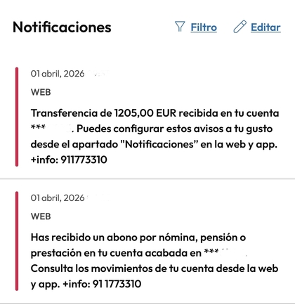 Hoy he recibido la de transferencia, supongo que mañana llegará la de nomina?