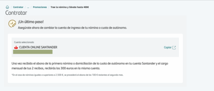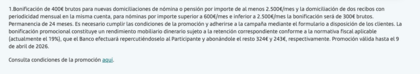En las condiciones de campaña me aparece que he cumplido con los requisitos, pero claro solo para la parte de los 300€ (me han ingresado ya los 243€ tras la retención del 19%) ya que no he llegado a superar el umbral de n0mina de 400€.
