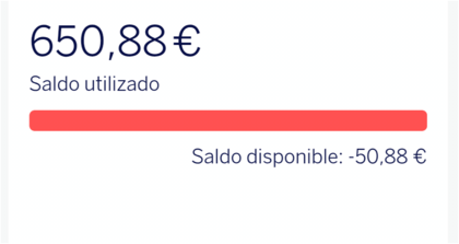 Compañer@s, creo que acabo de cagarla con esta tarjeta Aqua Crédito Más y, debido a un despiste entre mi pareja y yo, hemos excedido el límite de crédito de 600€: