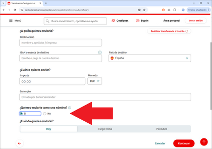 Ahora estaba programandolo desde Sant. Pero en ningún momento me ha preguntado si lo quiero enviar tipo nómina, únicamente lo he indicado yo en concepto y así no creo que sea válido, lo tengo programado para la próxima semana, si me pudieras indicar los pasos para realizarla correctamente te lo agradecería, muchas gracias por adelantado.