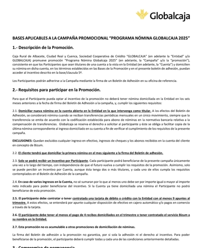 Una vez abierta si que es verdad que al mandar Antonio el boletín de adhesión a la promo nómina, te pide que le mandes la nómina.