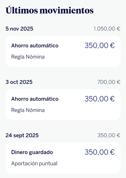 Día 28: Entra la nómina en la cuenta y utilizo ese dinero para hacer una aportación manual de 334€