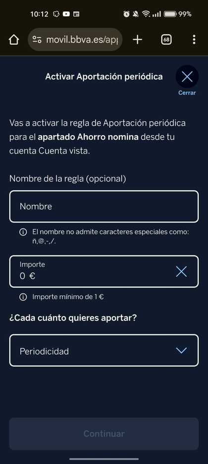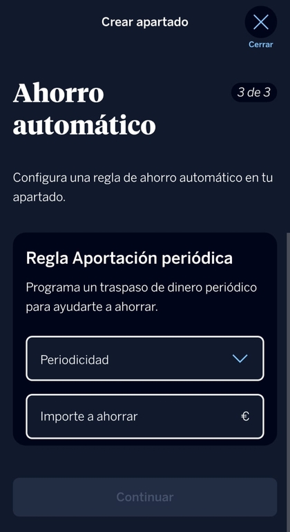 Es curioso porque a mi mujer sí he podido configurarlo siguiendo tus pasos pero en mi caso, no aparece la opción "Regla nómina" al acceder al ahorro automático, solo hay una "Regla de aportación periódica".