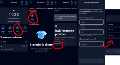 Prueba a crear el apartado con lo de la pantalla del cerdito ese que pusiste en la foto le das un nombre y te vuelves a salir y pulsas en aportación periódica y ahí te debería de salir lo del 6% .Trastea un poco porque seguro que te deja hacerlo.