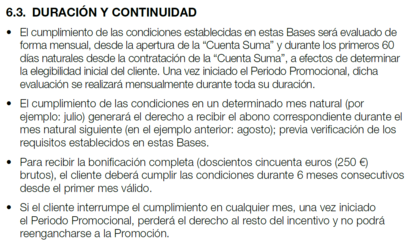 Hola @Teleprime, En mi caso me di de alta en la cta suma a principio de julio 25, donde las condiciones que aplicaban no obligaban a tener la cuenta abierta 12 meses, es decir, no tiene permanencia.