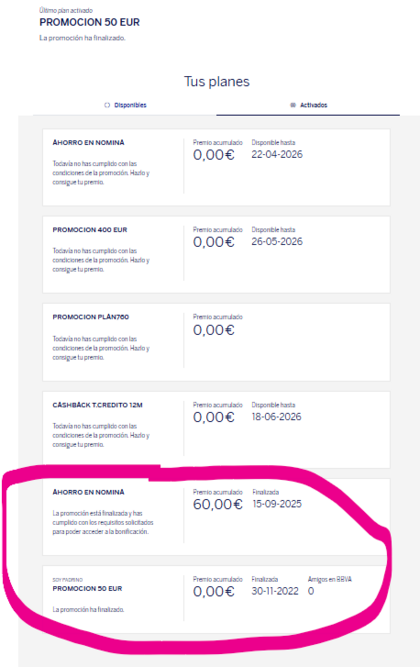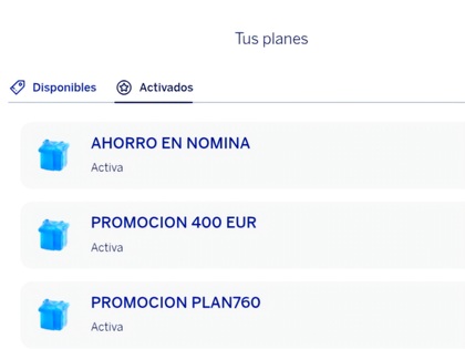Veo que en las últimas páginas (aunque también en las anteriores) se ha hablado mucho de dónde ver las promos activas para tener la seguridad de que todo está OK. Tan solo anotar por mi parte que a mí tampoco me funciona el enlace para visualizar en el móvil pero sí lo veo todo OK en web. Yo cerré cuenta y multicanal y, tras un primer intento fallido por no haber cerrado todo mi gestor, en un segundo intento a los pocos días ya pude abrir con PLAN760 correctamente. Sin embargo, me surge una duda. Me quiere sonar haber visto esta duda planteada algunas páginas atrás pero creo que no vi respuesta/resolución. ¿Es normal que me aparezcan en Tus planes - Activados las promos pasadas? Las cuatro de arriba son las nuevas, tras la reapertura, pero no pensaba encontrarme con las dos de abajo, que son las anteriores... Gracias!