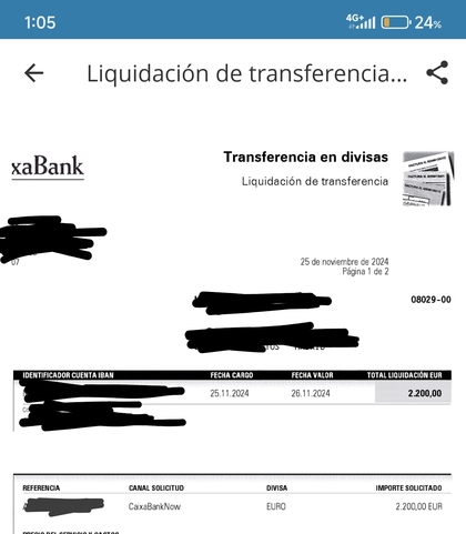 Transferencia hecha desde Caixa antes de la hora de corte a otra cuenta , ahí tienes la liquidación de la transferencia.