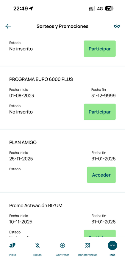 Fijaros de debajo de estado no me aparece nada ni inscrito ni no inscrito como si aparece en las demás promos. Probaré apuntarme alguna más a ver si pode “inscrito”. Si pode el botón “acceder” en lugar de “participar”. Supongo que estaré apuntado.