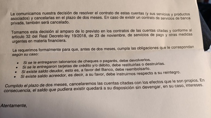 Ya ayer me llega el burofax diciendo que me la cancelan apelando al artículo 32 del Real Decreto-ley 19/2018, de 23 de noviembre, y que me dan 2 meses(que generosos) para recuperar solucionar etc... Lo que tenga en la cuenta,el problema es que la cuenta está bloqueada, vamos que no puedo hacer nada,y técnicamente esos 2 meses me valen verga.