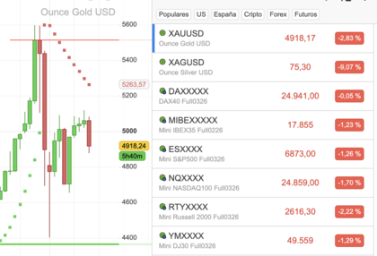 Razón no te falta el ETF de tierras raras... no veas una caída de casi un 5% me marca este broker que el producto ya lo tienen cerrado. Menuda volatilidad, oro y plata a la baja ahora a las 19:20 de la tarde el oro no ha confirmado ese 5100 y menudo papelón veo varios activos en rojo.