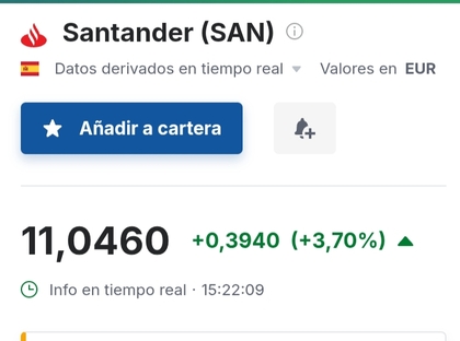 En Europa los mercados siguen positivos { IBEX +1.08% , DAX +0.57% , Eurostoxx +0.82% } . SAN +4.1% hasta 11.094€ y Acciona +7.7% en 218,20€ , muy fuerte está la cosa .