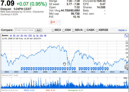 Tengo una duda sobre el "techo" del SAN, y mirando Pro-RealTime por un lado y Google Finance por otro, no me acabo de aclarar.
