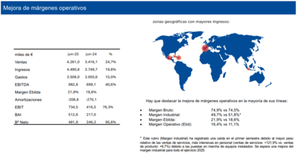 En el primer semestre de 2025, la compañía ha presentado unos resultados claramente excepcionales: