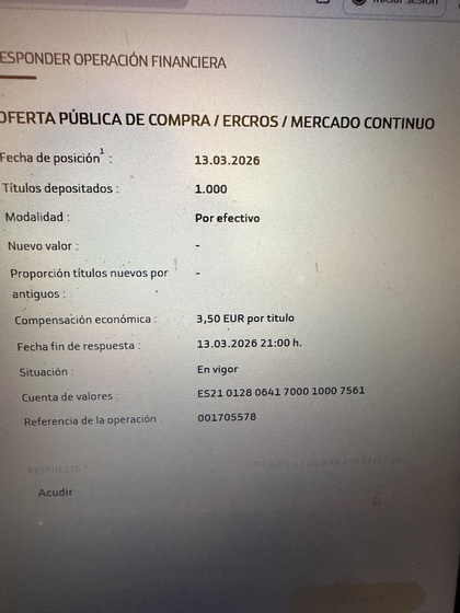 Actualización sobre la OPA de Bondalti sobre Ercros (plazo hasta el 13 de marzo):