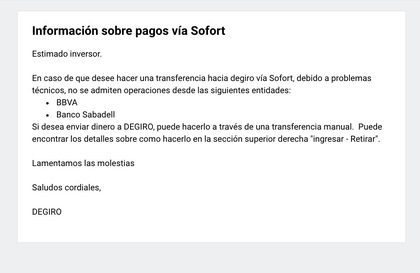 A pesar de lo que anuncia ese cartelito, el tratamiento que el tándem Degiro-Sofort aplica en caso de error con nuestro dinero es un escándalo.