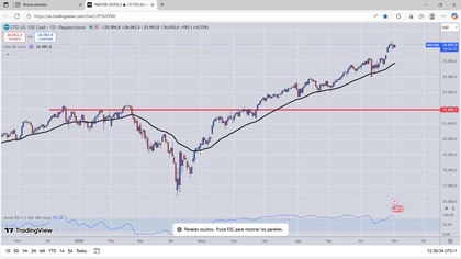 Otras de las grandes protagonistas de la semana es la Fed, que comienza este martes su cónclave monetario y cuyas conclusiones se darán a conocer mañana miércoles. El mercado descuenta con una probabilidad del 97,8%, según la herramienta FedWatch de CME, que el banco central volverá a recortar los tipos de interés en 25 puntos básicos tras el buen dato de inflación de septiembre.