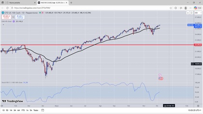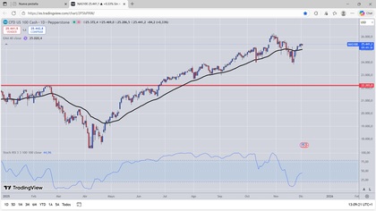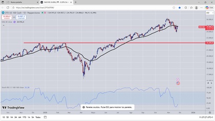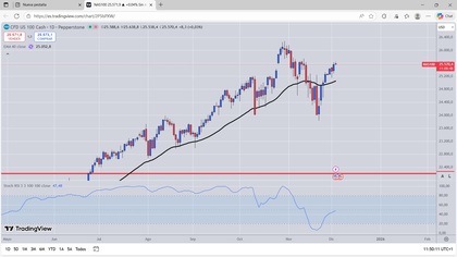 Último lunes de noviembre.... última semana de noviembre, ya se ve la sombra de diciembre apareciendo al final del domingo.... y Santa dudando si sacar o no su trineo para participar en el rally de navidad!!!.... GRAFICO DIARIO NASDAQ100