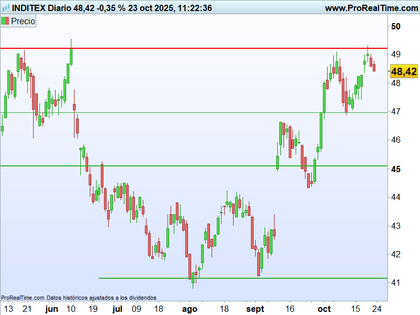 Roche (-2,62 %, a 285,70 francos suizos) se ve castigada en la Bolsa de Zúrich tras presentar unas ventas algo decepcionantes en el tercer trimestre y a pesar de la revisión al alza de algunos objetivos anuales. En los nueve primeros meses del año, la facturación del laboratorio aumentó un 2 %, o un 7 % a tipos de cambio constantes, hasta alcanzar los 45 862 millones de francos suizos, es decir, 49 598 millones de euros. Se trata de una desaceleración con respecto al aumento del 4 % registrado en el primer semestre a tipos de cambio corrientes.