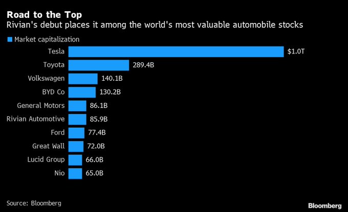 Rivian se encuentra entre los principales competidores que se alinea para enfrentarse a Tesla, con 10.500 millones de dólares (9.069 millones de euros) recaudados de compañías como Amazon y Ford Motor, una fábrica en Illinois (Estados Unidos) y miles de reservas para su camión R1T y su vehículo deportivo utilitario R1S.