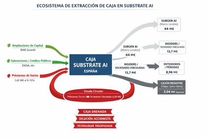 Conclusión final: Substrate AI no es un negocio de IA, sino una máquina de reciclaje de capital. El flujo > 66 M€ demuestra que los DIRECTIVOS obtienen beneficios privados mientras la empresa y el accionista minoritario pierden dinero real.