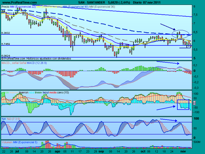 El Santander tiene grandes posibilidades de volver a los 5 Euros, y por tanto arrastrar a nuestro índice al entorno de los 8000 puntos.