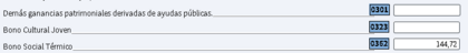 Yo lo puse en la 301 y sin problema y este año automaticamente al abrir el borrador "se me ha preguntado" si quería incluir los 334 € del bono térmico le he dado a que si y se han colocado automaticamente de nuevo en la casilla 301.