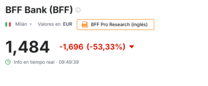Buenas tardes esto es diferente es peor. El consuelo es tener menos de 100k por persona en depósitos que cubre el Banco de Italia . Por lo demas...no se que decir.....parece ser que ahora el ratio CET-1 que mide la solidez y la solvencia financiera de la entidad debe de estar por encima del 9,8% no porque diga la cifra exacta el Banco de Italia sino simplemente que por lo visto hasta ahora está por encima de esa cifra según el regulador Italiano.me parece que bff dio 13,4% en Septiembre pasado pero esas cifras para mi ya no tienen ningún valor si han falsificado las cuentas motivo de la investigación. El ratio bajaría en principio si esta bajada brutal en bolsa repercute en sus activos contabilizados (bonos y derivados) con lo cual le llevaría a mayores provisiónes y por tanto a una bajada del CET-1.......Si en algún momento en la presentación de las cuentas planificadas para lo más tardar creo el 30 de Abril bajara el CET-1 del 9,8% no descartaría la toma de BFF por el Banco de Italia es decir seria intervenido.