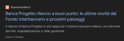 Banca Progetto: la reestructuración va por buen camino: últimas noticias del Fondo Interbancario y próximos pasos.