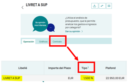 Para verlo en tu área cliente, vía web por ejemplo, accedes a tu Livret A, pinchas en "Contrato"... et voilà: