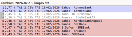 #48009 Re: Tabla de Depósitos de Monillo Maclean Seguir 13/02/26 18:23 Bajadas anunciadas en Achmea, SME y Nordax. 5 Responder