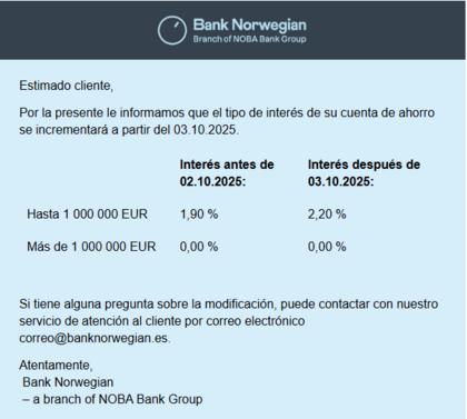 Re: Bank Norwegian sube el interés de su cuenta al 1,25 % TAE