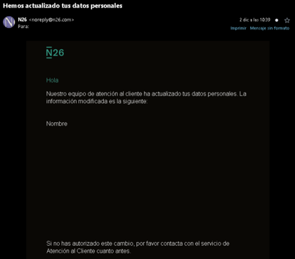 Hoy toca susto. Me llega este email: Yo no he autorizado nada. Luego me llega este otro: Intento entrar en la app y no me deja, ni con huella ni con contraseña. Dice error. No dice que la contraseña sea inválida. Me cago vivo. Ea, ya me han hackeado la contraseña, cambiado el nombre y se han apropiado de los 0€ de la cuenta.