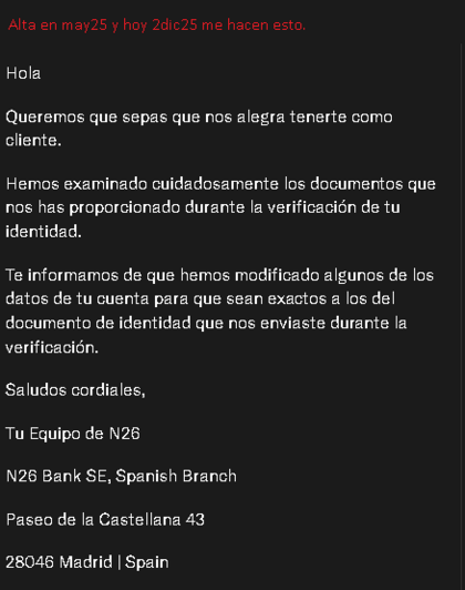 Entro por web y me pide validación push al móvil pero como no puedo entrar en la app, doy a no tengo acceso a la app y me envía un código SMS que tras ponerlo consigo entrar por web. Miro el nombre y no se ha cambiado. Leo el supuesto mensaje y dice esto: No veo cambios en mi nombre y apellidos pero tampoco recuerdo lo que ponía antes. Mi nombre es complejo con Ñ y guiones de apellidos compuestos. Imagino que habrán tocado algo de Ñ o guiones.