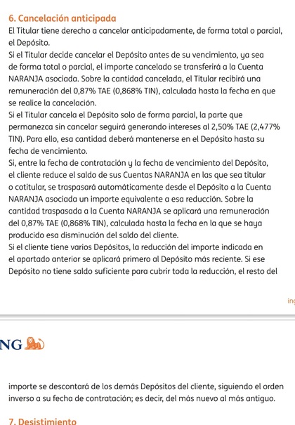 Sabéis si respecto al depósito del 2,50% a 3 meses, se puede cancelar una parte del dinero y sacarlo a otro banco y el resto del importe me sigue rentando al 2,50? En las condiciones leí esto..