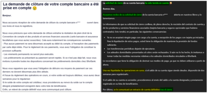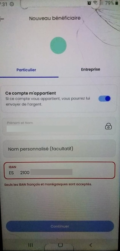 Pue sí, esto no estaba en la app allá por el 19-dic, ni tampoco el 19-ene. Debe ser muy reciente. Lo que parece otra tomadura de pelo es que lo 1º que exigen, pues no parece ser optativo, sea indicar un IBAN por si al liquidar la cuenta previamente a su cierre hubiere saldo a favor del cliente, pero no un IBAN cualquiera... Solo les valdría un IBAN de Francia (FR**) o de Mónaco (MC**). Flipante. Ni idea de cómo podríais superar esa pantalla para avanzar en el proceso, caso no tener otra cuenta en alguno de esos 2 países. Y luego la movida de si tenéis nombre (prénom) compuesto, pues para esta gente el titular de la cuenta solo contiene el primer nombre (María, caso María Fernanda; Luis, caso Luis Fernando, etc.). Si dejaron aperturar cuenta a ciudadanos europeos no le veo sentido alguno que ahora, para cancelar, les exijan otra cuenta en Francia o Mónaco.