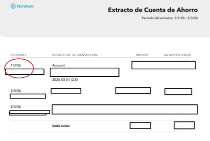 Le informamos que los intereses de su cuenta de ahorro se abonan el 1 de cada mes, correspondiendo a los intereses generados durante el mes anterior.