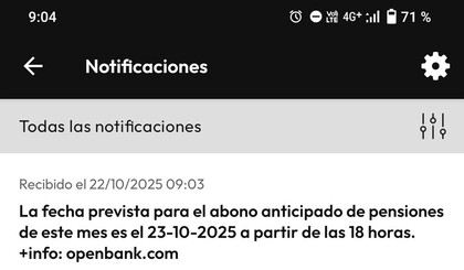 #10625 Re: Cobro imv Openbank - Ingreso mínimo vital Ver mensaje de Nando9 Egea Jonh Seguir 22/10/25 10:21 Pero ese mensaje es de dentro de la app no?..El que sale en notificaciones del movil no ha llegado aun... 1 Responder