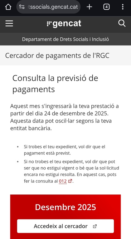 Hombre es que llamar un día 11 ya es una barbaridad sabiendo ya como funciona , que salvo agosto por vacaciones que lo ponen en la web antes del 10, ya deberiamos saber que el 012 tampoco lo sabe hasta que no sale en web o máximo un dia antes, la renda siempre se paga antes del 24 si que en 2023 los que no tenían caixa como el 23 fue sabado y el 25 y 26 era festivo cobró el miércoles 27, pero vamos que estamos aún a dia 11 es totalmente imposible que nadie sepa la fecha oficial, aunque todo el mundo sabe que será 22 o 23 caixa y 23 o 24 el resto.