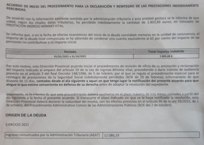 Me ha llegado la reclamación de una deuda por cobros indebidos del Ingreso Mínimo Vital (IMV) (pagos indebidos, más bien, diría yo).