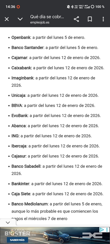 Día 2 de enero viernes segurísimo .se cobra en Santander eso espero .