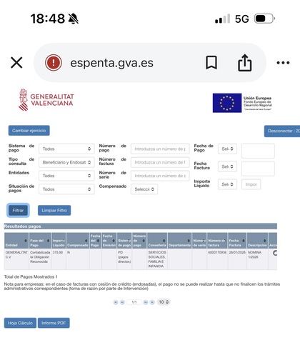 #5755 Re: Prestacion de la Ley de Dependencia Ver mensaje de Joli1978 Maykajp Seguir 26/01/26 15:40 Todavía no sabe contabilizado por eso sale que no hay pagos Responder