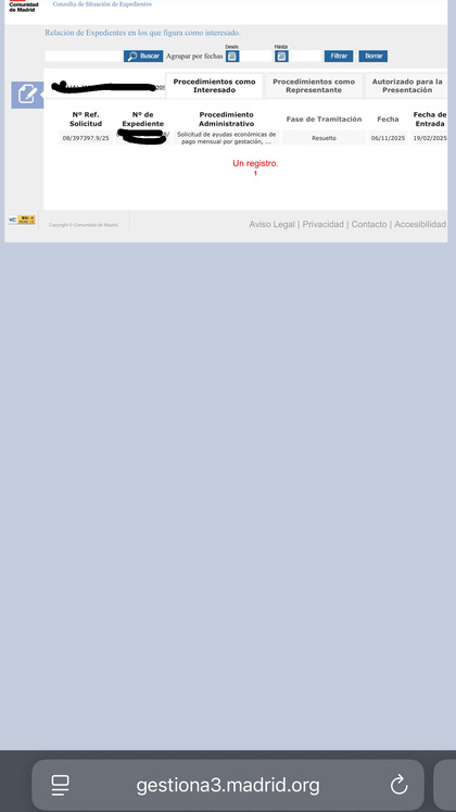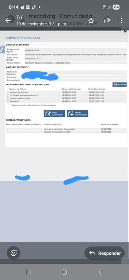 Si deseas confirmar esta información o necesitas más detalles sobre tu expediente, te recomendaría que accedas a la plataforma de gestión y revises la sección correspondiente. También puedes contactar con el servicio de atención al ciudadano para obtener una respuesta más precisa sobre tu situación.