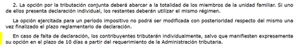 - La tributación conjunta solo puede elegirse al presentar la declaración en plazo.