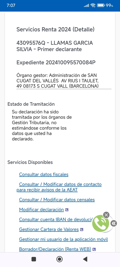 - Su declaración ha sido tramitada por los órganos de Gestión Tributaria, estimándose conforme la devolución solicitada por usted, sin perjuicio de las comprobaciones que pudieran realizarse posteriormente por la Administración Tributaria.