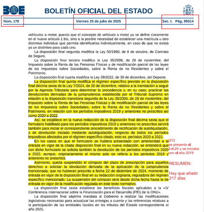 Diciembre 2024: hacienda deja sin efecto el formulario de 2024 y deciden realizar las devoluciones en varios años.