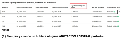 Lo tuyo lo veo claro, pero yo como yo presenté el modelo DT2 el 27-05-2025 y según tú captura el 2019, salvo escrito presentado, prescribe el 30-03-2025. ¿Debo entender que mi 2019 ha prescrito? Gracias por tu atención.