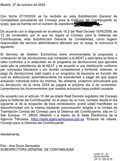 Bueno un día más con “4 días hábiles”.. hice mi queja y a un par de horas recibí respuesta ya que hace más de 1 semana que no se mueven los días cuando reviso el expediente. Me han dado fecha de pago, pero a ver si es verdad.. os muestro lo que me han respondido.