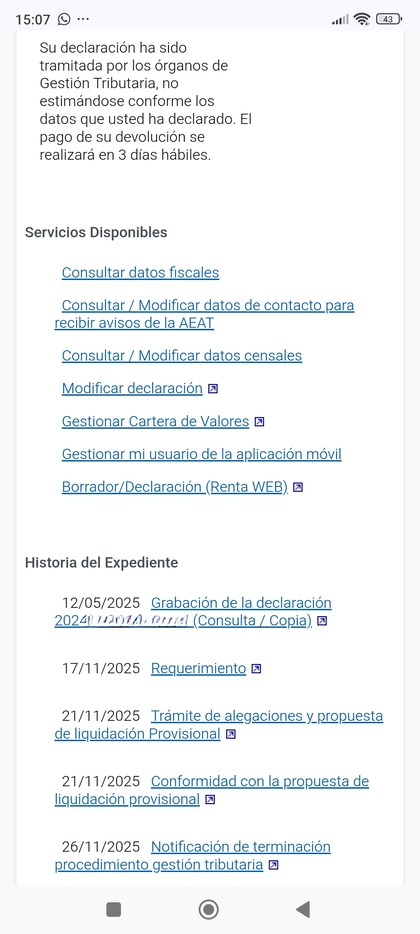 Buenas tardes! Ayer tuve cita telefónica porque llevo comprobando desde abril, un señor amable me vio la renta y me dijo que pronto me la iban a ingresar porque todo estaba correcto. También me comentó que entre esta semana y la que viene van a liquidar muchas declaraciones ya que tienen que soltar un paquete a finales de noviembre y principios de diciembre. Así que suerte a todos y espero que este comentario de esperanza a muchos. Suerte a todos!